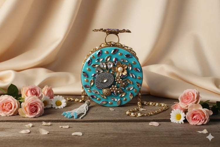 Bridal Luxury Clutch ✨ Double-Sided Design & Turquoise Sparkle 💎"